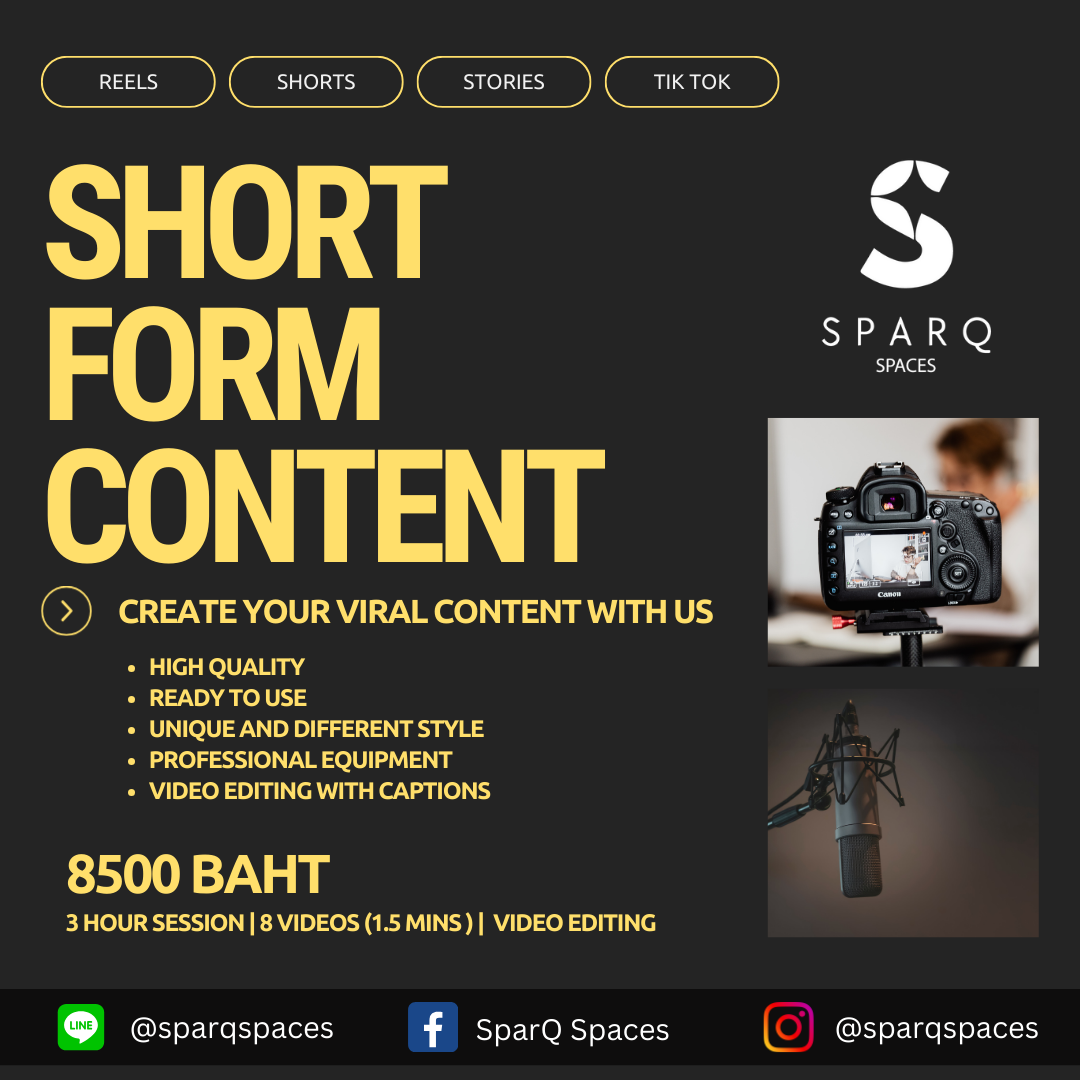 Ignite your imagination at SparQ Spaces, Bangkok's premier studio for photographers, videographers, and podcasters.